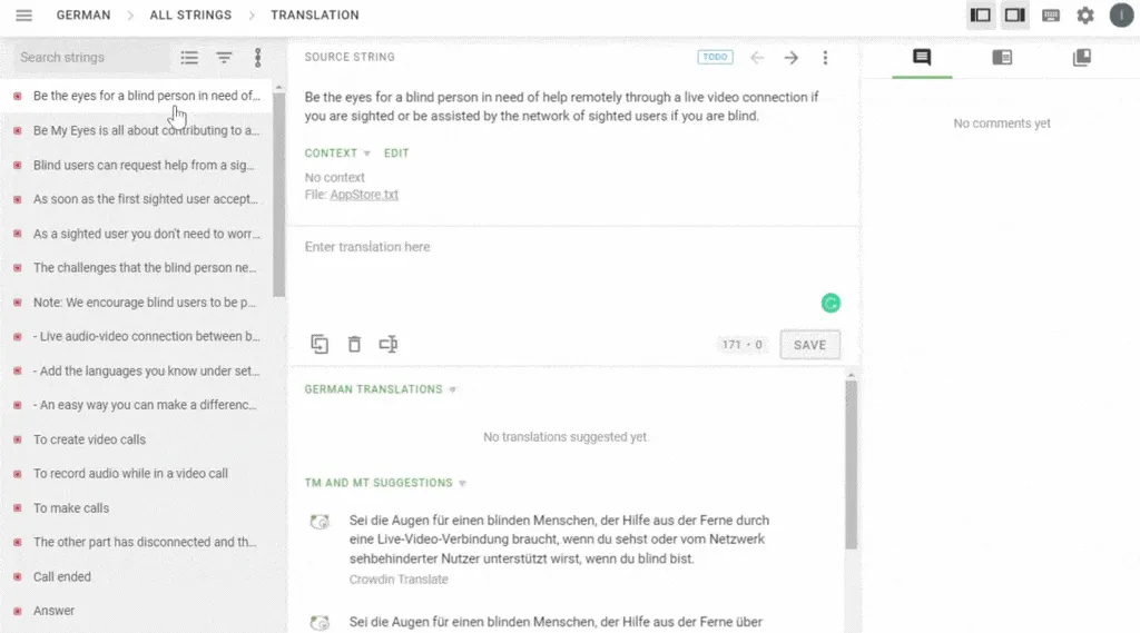 - Uploading screenshots of the used strings to the localization project.