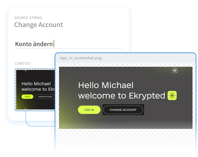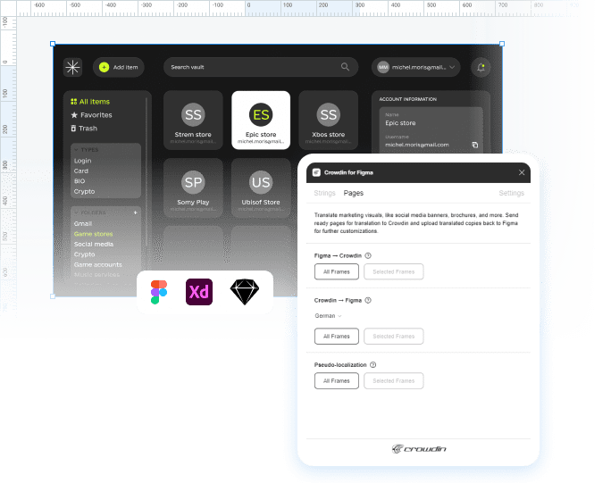 Provide translators with valuable context by sending design and context from your design tool (Figma, Sketch, Adobe XD) to Crowdin.