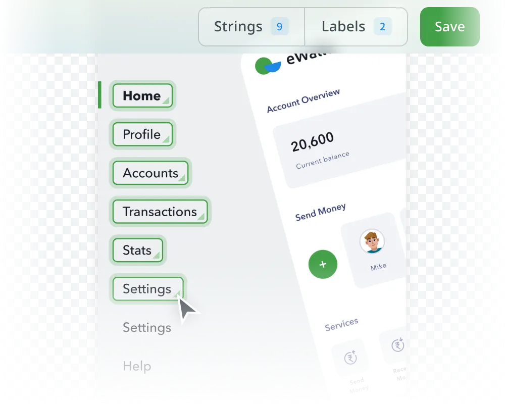 Crowdin's Screen Translation simplifies UI localization by allowing users to translate interface elements with a real-time preview of your app design.
